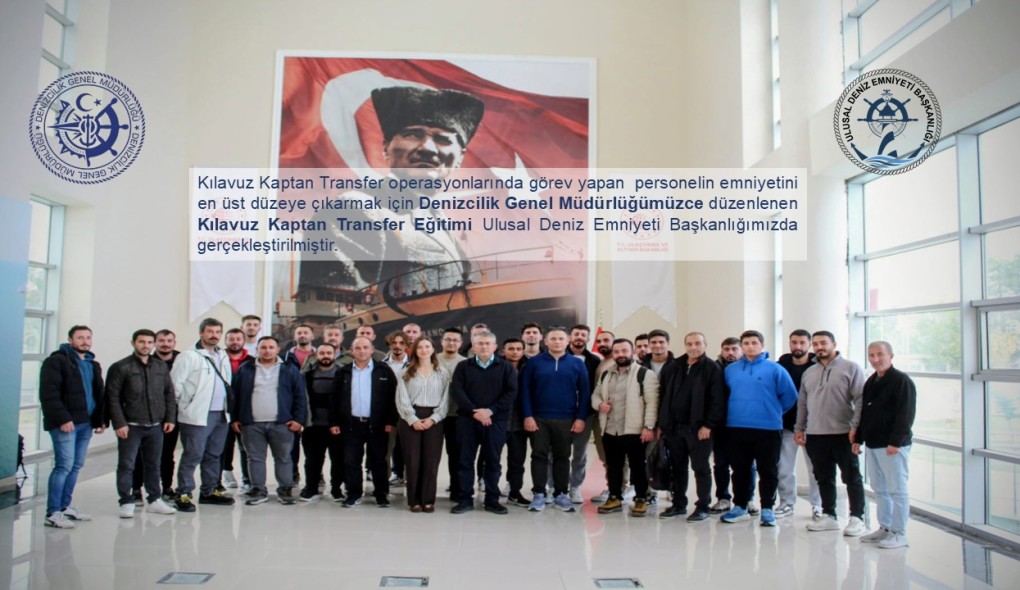 emniyetini en üst düzeye çıkarmak için Denizcilik Genel Müdürlüğümüzce düzenlenen Kılavuz Kaptan Transfer Eğitimi Ulusal Deniz Emniyeti