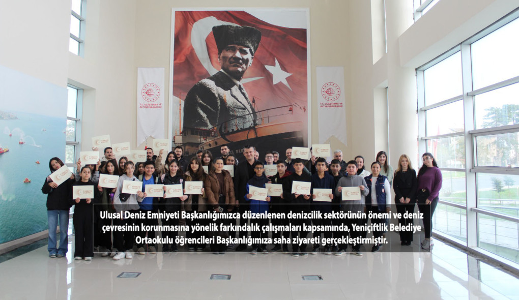 Ulusal Deniz Emniyeti Başkanlığımızca düzenlenen denizcilik sektörünün önemi ve deniz çevresinin korunmasına yönelik farkındalık çalışmaları kapsamında, Yeniçiftlik Belediye Ortaokulu öğrencileri Başkanlığımıza saha ziyareti gerçekleştirmiştir.